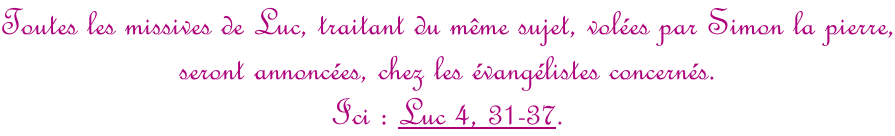 L’homme tourmenté par un esprit mauvais   (Marc 1, 21-28) Messages canalisés par Françoise-Rose,    le 10 Février 2021. << Retour à la page « Jean-Marc de Gethsémani » Toutes les missives de Luc, traitant du même sujet, volées par Simon la pierre, seront annoncées, chez les évangélistes concernés.  Ici : Luc 4, 31-37.